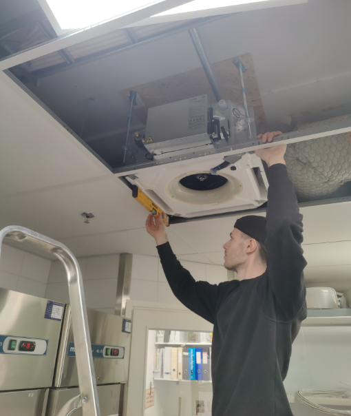 Kuntosalin jäähdytyslaitteiden asentaminen.