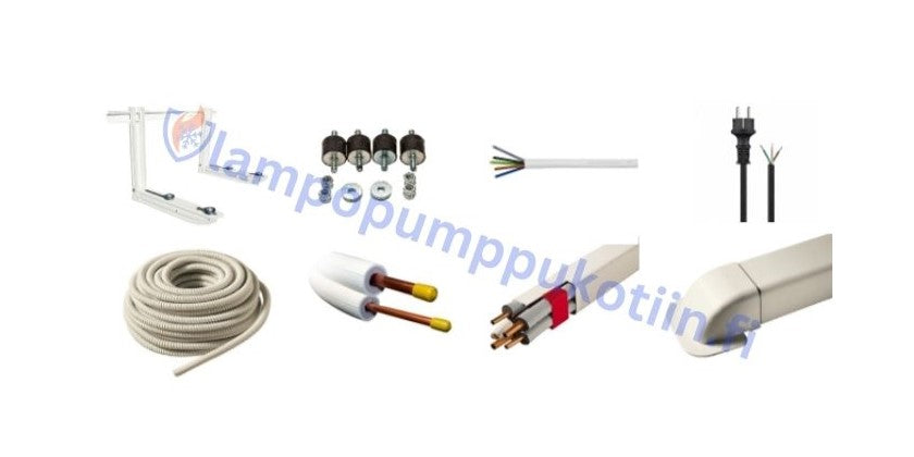 - 5 metriä kylmäputkia, sähkökaapelia, kondenssivesiletkua ja peitekourut.