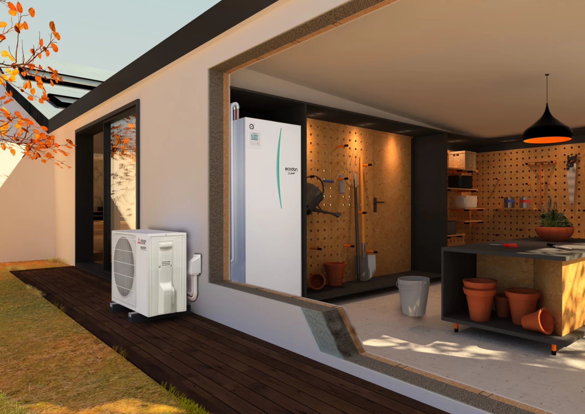 Mitsubishi Electric EcoDan Vesi-ilmalämpöpumppua asennettuna